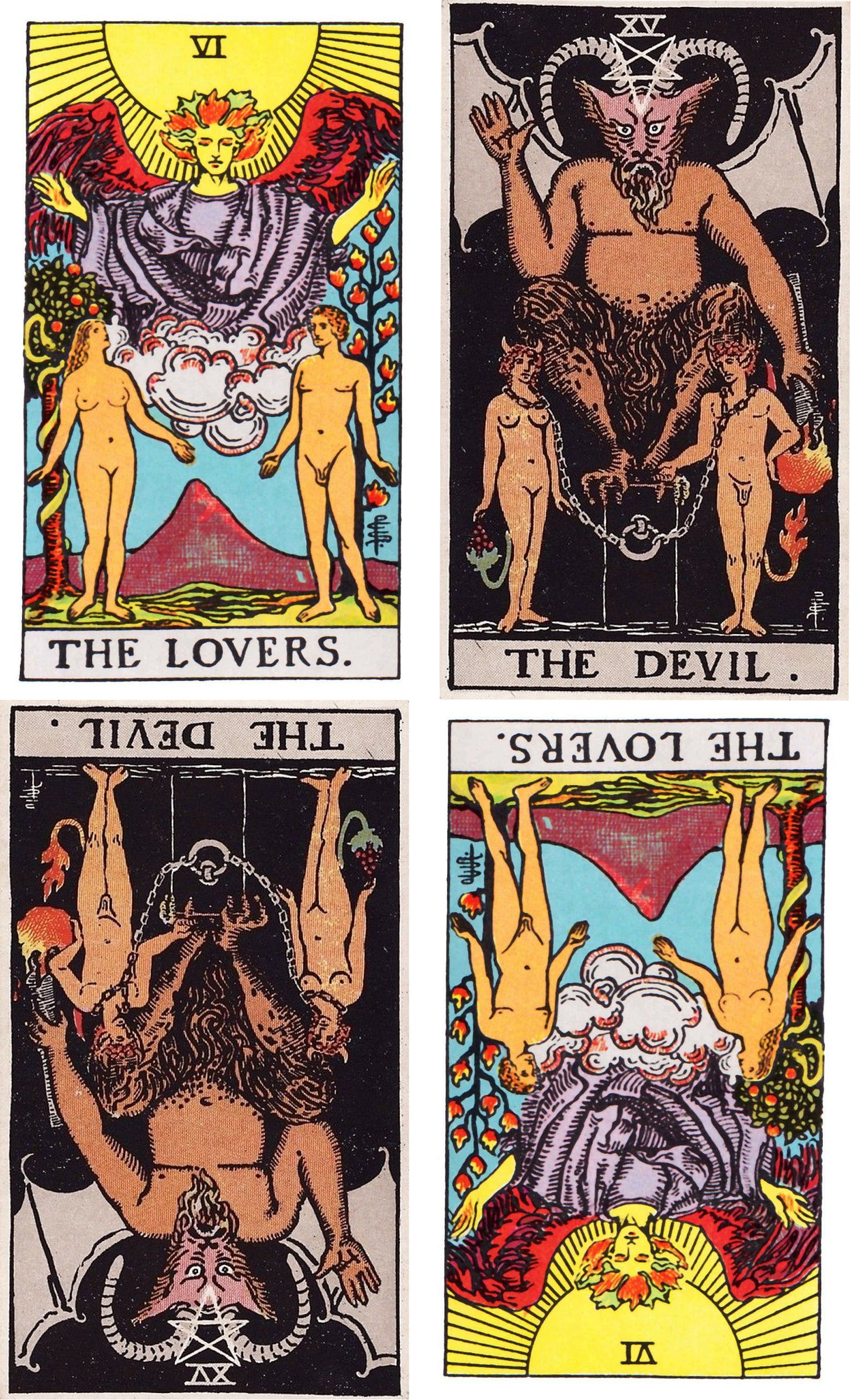 The Lovers have an angel blessing their naked souls because they stayed loyal to themselves and nurtured each other’s deepest truth. They didn’t take shortcuts that kept them trapped in vicious cycles. They didn’t negotiate their souls with the Devil or disrespect themselves for instant gratification.