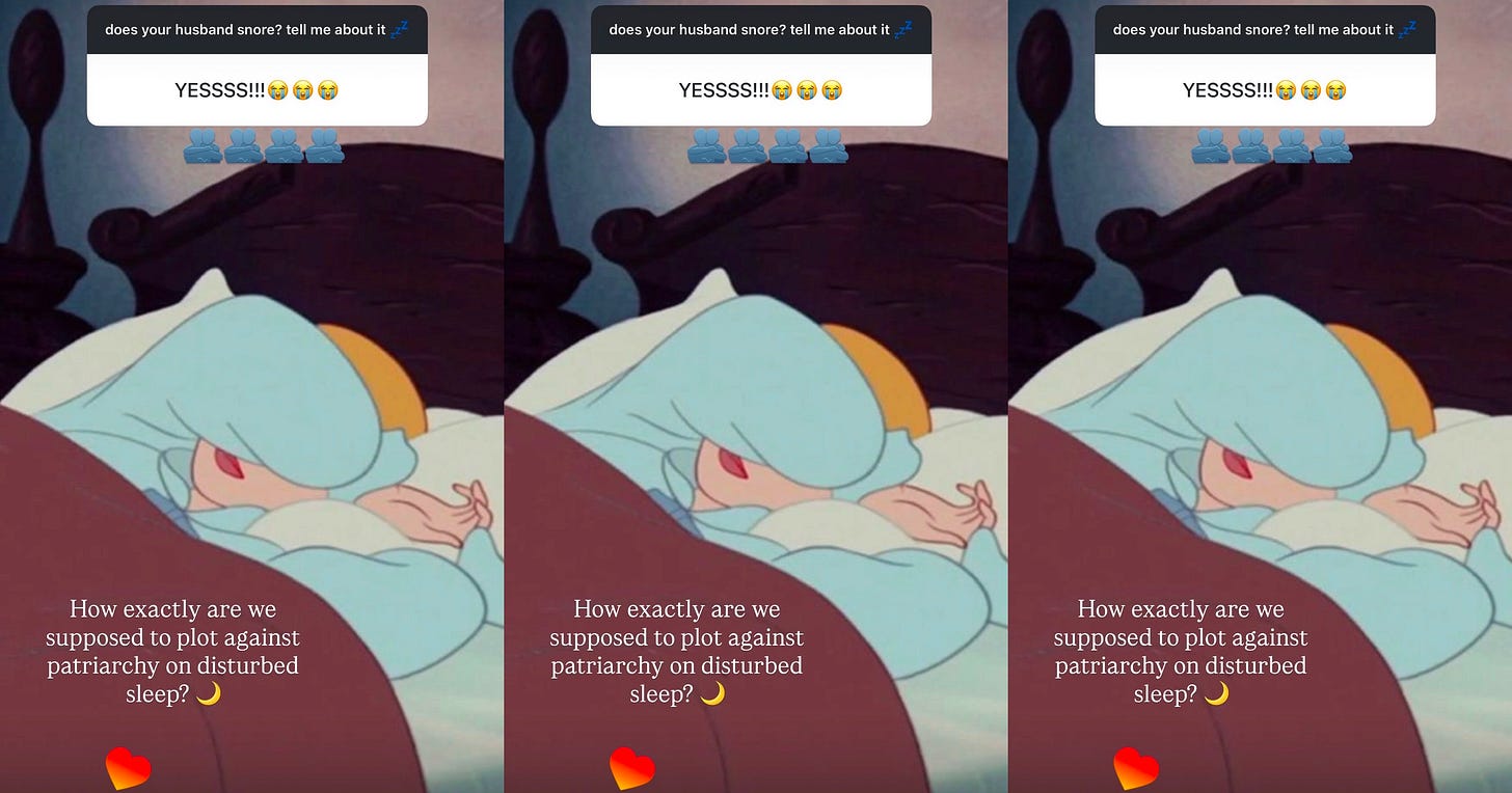 This newsletter is an invitation for an unhinged conversation, the kind we could have over brunch or a glass of wine with friends who actually care. So pour yourself something to drink and sit with me for five minutes — let’s talk about sleep and snoring husbands.